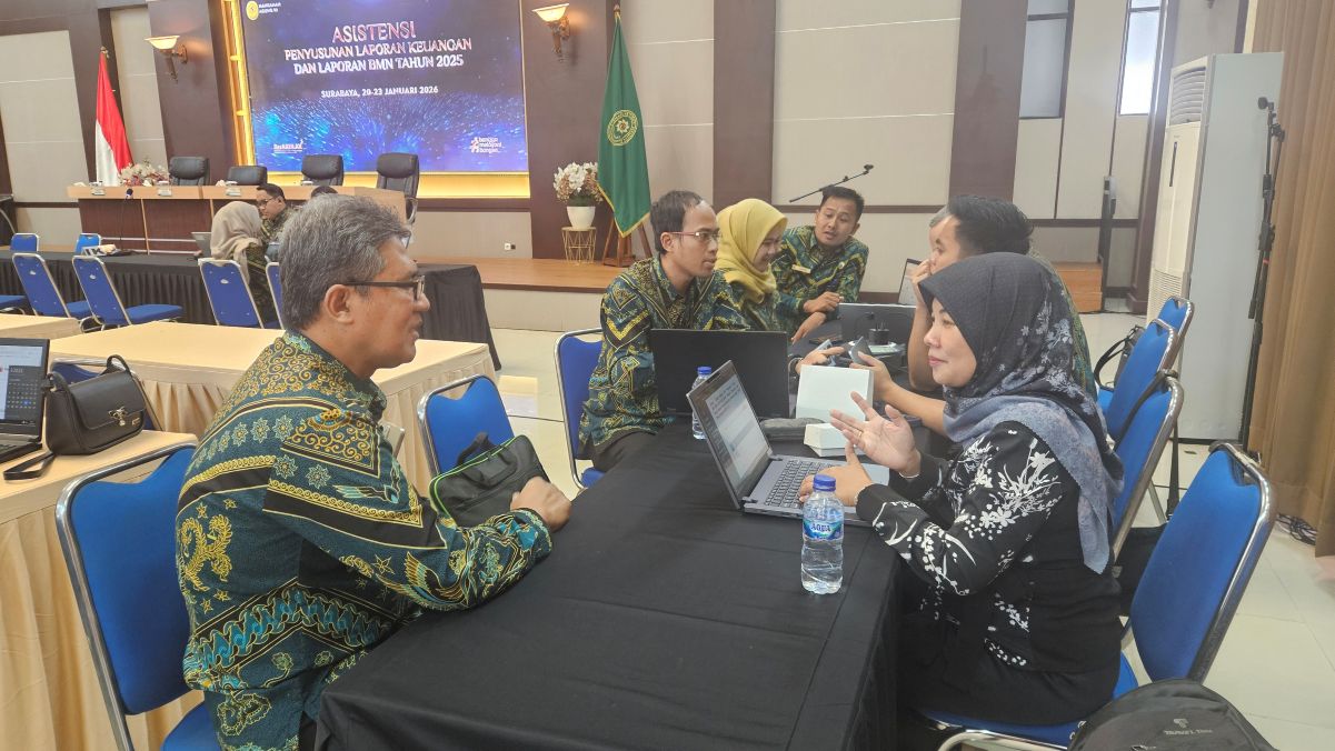 www.pa-ponorogo.go.id || Jum’at, 23/01/2026, Ahmad Samsyul Bachri (Bendahara Penerimaan), Rizky Martasari (Operator GLP) dan Frangky Rifai Putra (Operator Aset) Pengadilan Agama Ponorogo menghadiri kegiatan asistensi penyusunan Laporan Keuangan dan Laporan Barang Milik Negara (BMN) Tahun 2025 yang diselenggarakan di Pengadilan Tinggi (PT) Surabaya berdasarkan surat undangan nomor : 46/SEK.W14-U/KU2.2/01/2026. Kegiatan ini diikuti oleh perwakilan seluruh satuan kerja di bawah Mahkamah Agung di wilayah Jawa Timur yang dibagi menjadi beberapa sesi yang dimulai dari tanggal 20 s.d 23 Januari 2026. Kehadiran PA Ponorogo menunjukkan komitmen dalam meningkatkan kualitas pengelolaan administrasi dan keuangan lembaga.