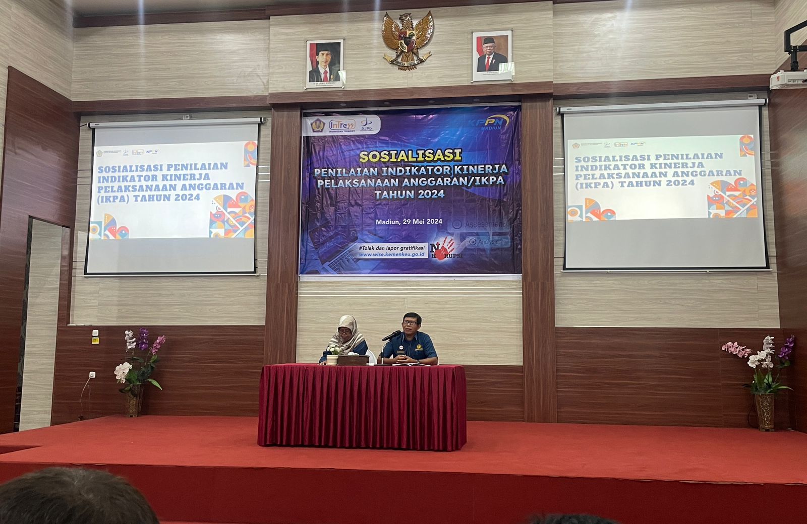 www.pa-ponorogo.go.id || Rabu, 29 Mei 2024, Waqidah Kun Romadhoni, S.T (Bendahara) dan Rizky Martasari, S.Sos (Operator PA. Ponorogo) menghadiri Undangan KPPN Madiun terkait Sosialisasi Penilaian Indikator Kinerja Pelaksanaan Anggaran (IKPA) Tahun 2024. Tujuan dari kegiatan ini adalah guna menindaklanjuti Peraturan Dirjen Perbendaharaan Nomor : PER-5/PB/2022 tentang Petunjuk teknis Penilaian IKPA Belanja Kementerian Negara/ Lembaga dan memperhatikan Surat Direktur Pelaksanaan Anggaran Ditjen Perbendaharaan Nomor S-163/PB.2/2024 tentang ketentuan penilaian IKPA TA 2024. Kegiatan dilaksanakan secara luring di Aula Piet Harjono KPPN Madiun dengan di hadiri oleh 103 satuan kerja dibawah lingkup KPPN Madiun