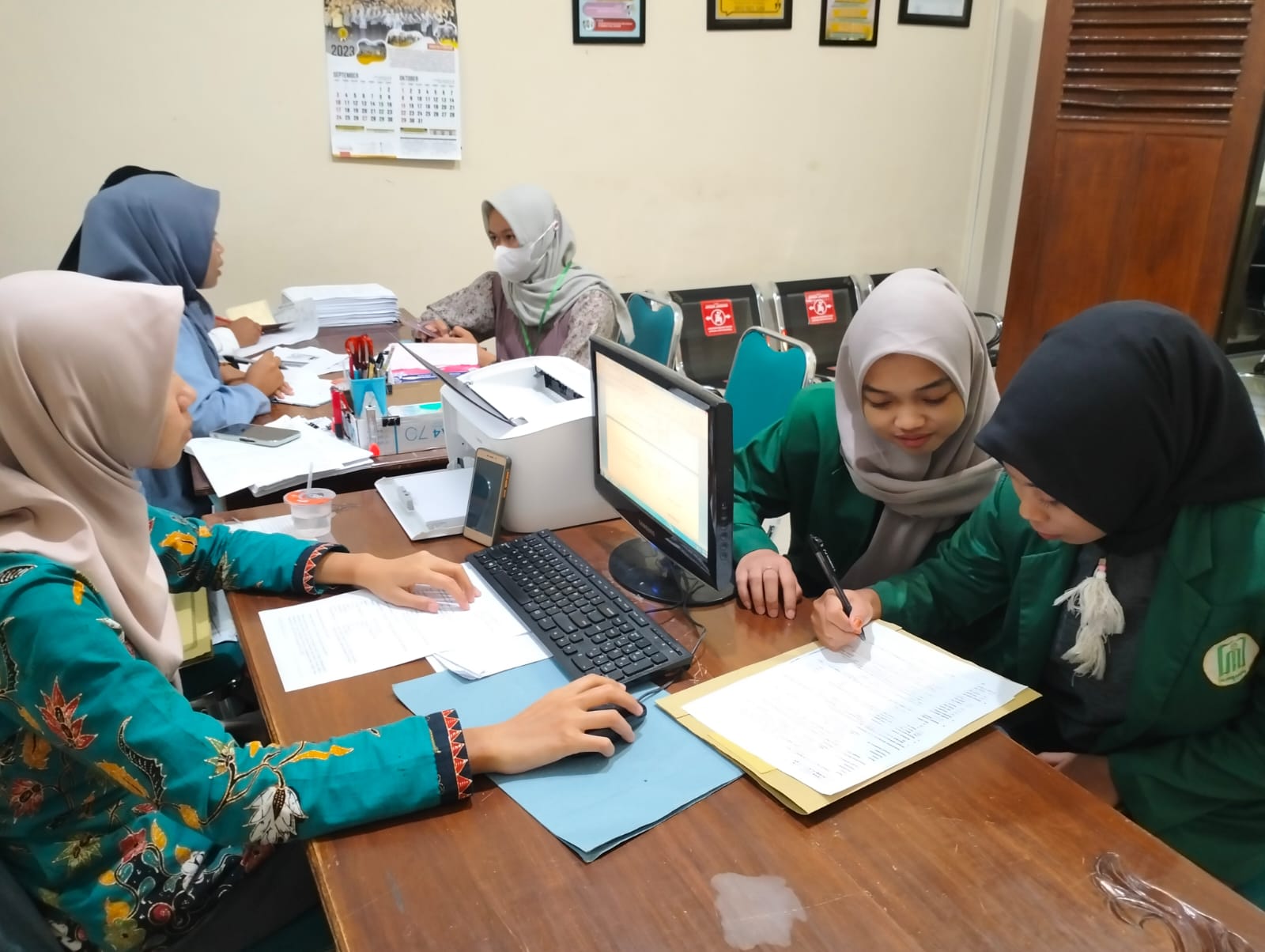 Disamping adanya penyampaian materi secara lisan, para mahasiswa juga diajak langsung untuk membantu petugas Posbakum. Diantara mahasiswa ada yang menulis biodata para pencari keadilan dan mengetik surat permohonan. Hal ini dilakukan sebagaimana arahan dari Panitera Pengadilan Agama Ponorogo Widodo S, S.HI., MH., Beliau menambahkan “dengan penugasan langsung ini besar harapan agar para mahasiswa mendapat bekal yang cukup mengenai pembuatan surat permohonan gugatan.