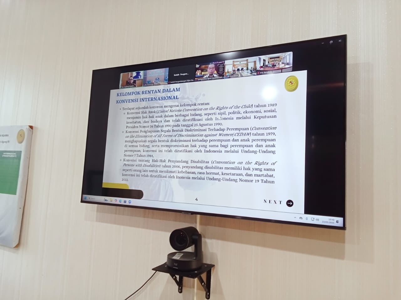 www.pa-ponorogo.go.id || Jumat, 23 Mei 2025. PA Ponorogo mengikuti kegiatan bimbingan teknis kaum rentan berhadapan dengan hukum yang diselenggarakan secara daring. Kegiatan ini merupakan tindak lanjut dari Surat Direktur Jenderal Badan Peradilan Agama MA RI Nomor: 1138/DJA/Dl.110/V/2025 yang menjadwalkan Pengadilan Agama Ponorogo untuk mengikuti kegiatan tersebut pada hari Jumat tanggal 23 Mei 2025. Adapun kegiatan ini diikuti oleh seluruh tenaga teknis di lingkungan peradilan agama, termasuk Pengadilan Agama Ponorogo. Tujuan diadakannya bimtek ini agar tenaga teknis dapat memahami kebijakan MA mengenai akses keadilan bagi kelompok rentan.