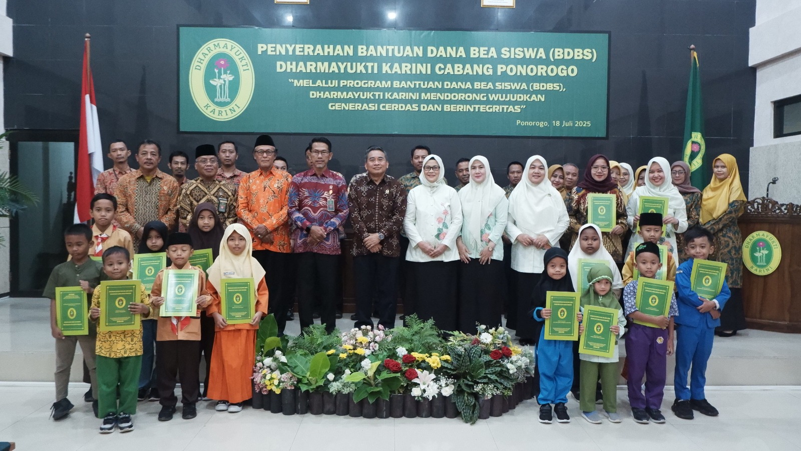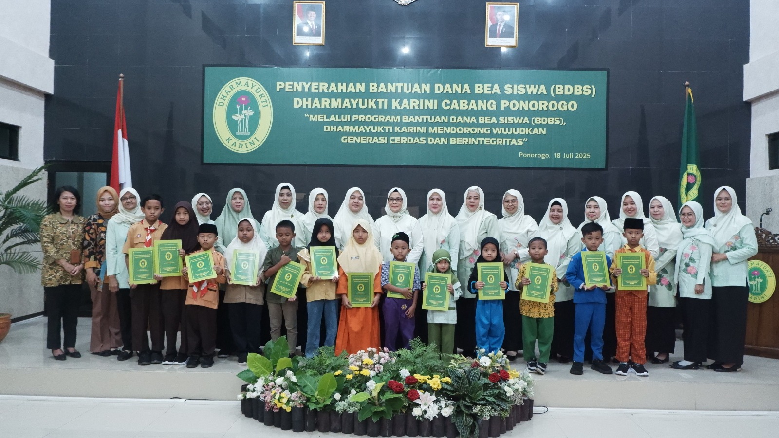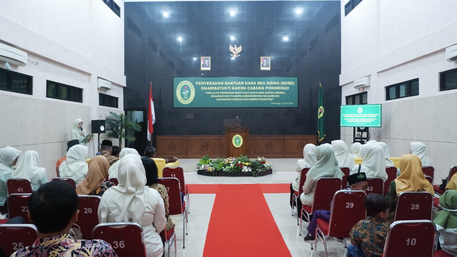 www.pa-ponorogo.go.id | Jumat, 18 Juli 2025. Bertempat di ruang sidang utama Pengadilan Agama Ponorogo, Dharma Yukti Karini (DYK) Cabang Ponorogo menyerahkan Bantuan Dana Beasiswa (BDBS) dengan tema “Melalui Program Bantuan Dana Beasiswa (BDBS), Dharmayukti Karini Mendorong Wujudkan Generasi Cerdas dan Berintegritas”. Penyerahan BDBS adalah kegiatan rutin yang dilakukan oleh organisasi Dharmayukti Karini di berbagai daerah untuk memberikan bantuan dana beasiswa kepada anak-anak dari keluarga peradilan. Acara dihadiri oleh Pelindung, Ketua, Wakil Ketua 1, serta jajaran pengurus dan anggota DYK Cabang Ponorogo. Hadir juga Hakim PA Ponorogo, penerima BDBS serta wali/ orang tua penerima.