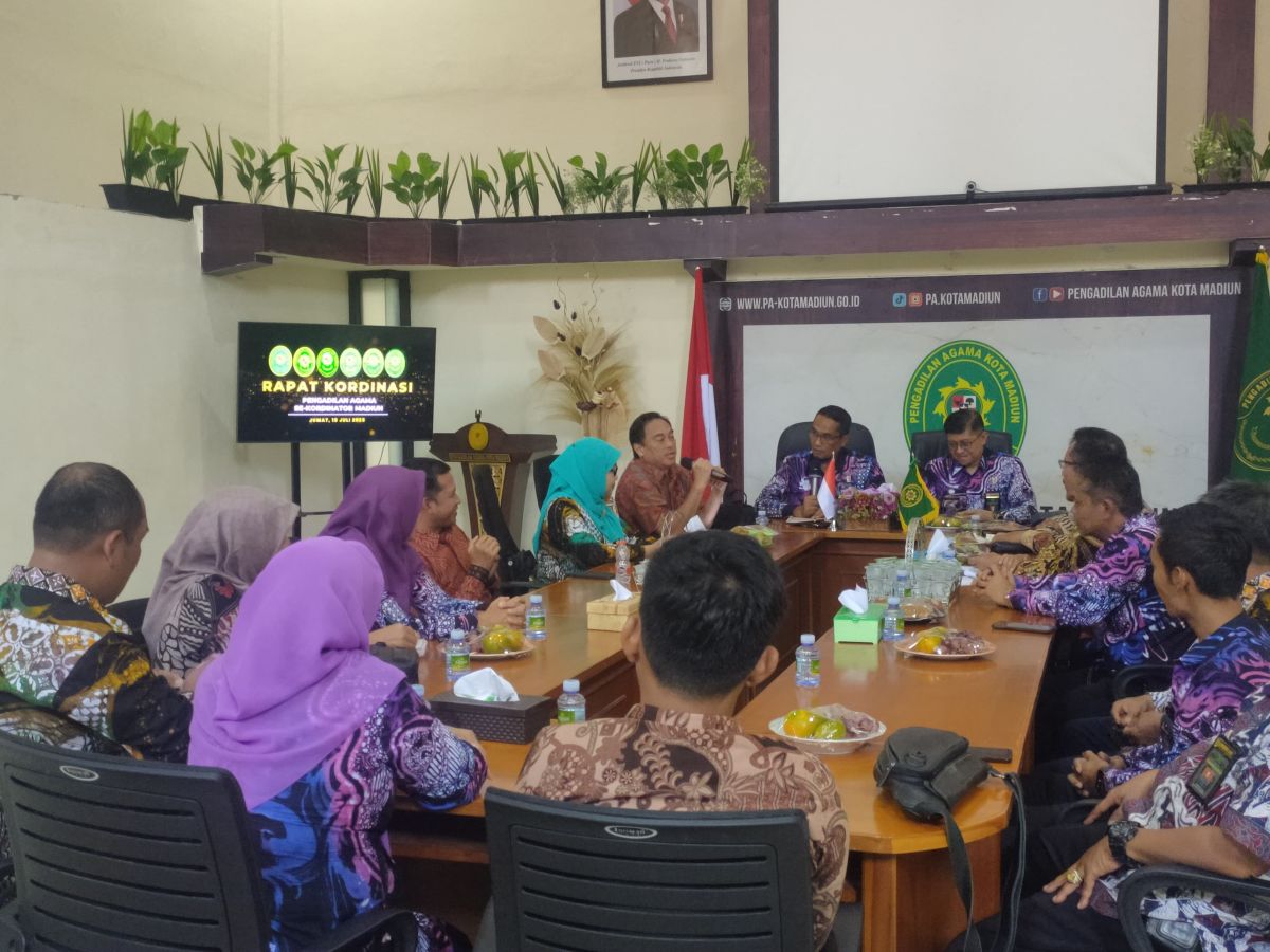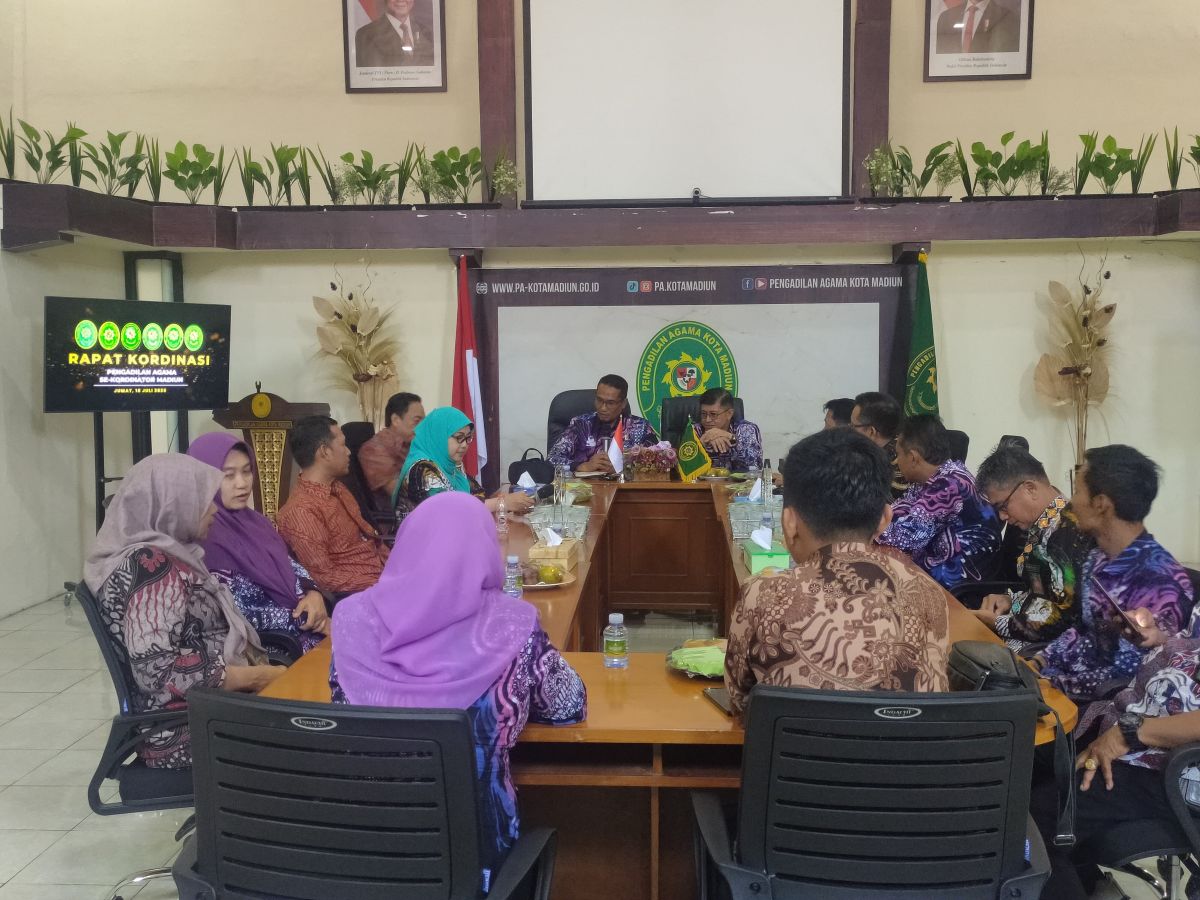 www.pa-ponorogo.go.id || Pada Tanggal 18 Juli 2025, Pengadilan Agama Ponorogo menghadiri Rapat Koordinasi Pengadilan Agama se-Karesidenan Madiun bertempat di Pengadilan Agama Kota Madiun. Kegiatan ini dilaksanakan berdasarkan undangan resmi dari Pengadilan Agama Kota Madiun dengan nomor surat 1422/KPA.W13-A25/UND.HM2.1.1/VII/2025. Rapat koordinasi ini dihadiri oleh seluruh unsur pimpinan dari Pengadilan Agama yang berada di wilayah Karesidenan Madiun, termasuk Ketua Pengadilan Agama Ponorogo, Bapak Muhammad Jati Muharramsyah, S.Ag., S.H., M.H. Panitera Pengadilan Agama Ponorogo, Bapak Widodo Suparjiyanto, S.HI., M.H. Sekretaris Pengadilan Agama Ponorogo, Ibu St. Mar’atu Ulfah, S.Ag.