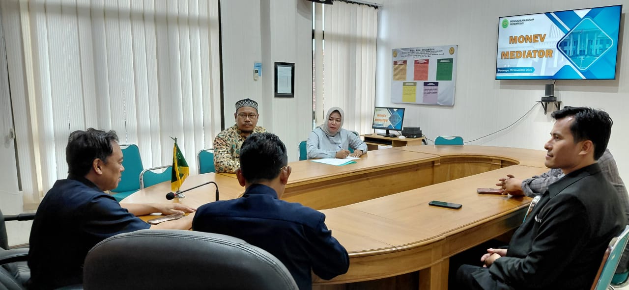 www.pa-ponorogo.go.id || Ponorogo, 5 november 2025. Pengadilan Agama (PA) Ponorogo menggelar kegiatan Monitoring dan Evaluasi (Monev) terhadap Mediator Non-Hakim. Kegiatan ini dilaksanakan di Ruang Media Center PA Ponorogo dan dipimpin langsung oleh Ketua Pengadilan Agama Ponorogo, Muhammad Jati Muharramsyah, S.Ag., S.H., M.H., didampingi oleh Panitera, Widodo Suparjianto, S.H. Monev ini bertujuan untuk meningkatkan kualitas mediasi dalam penyelesaian perkara di Pengadilan Agama Ponorogo.
