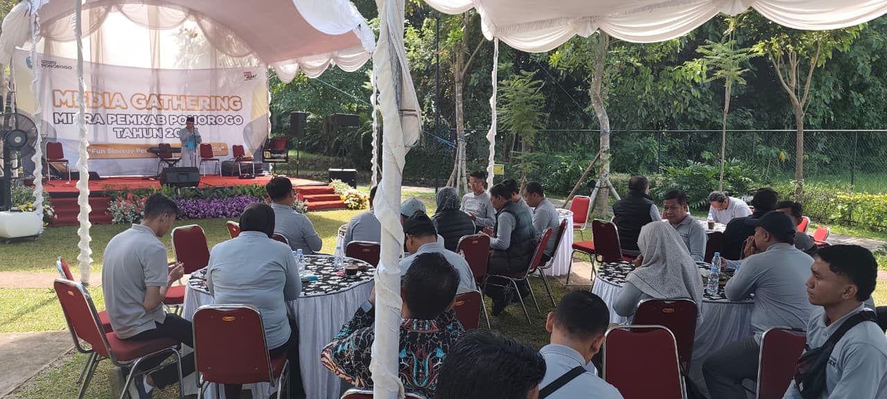 Media Gathering dimulai pukul 08.00 WIB di Taman Jatimori dengan suasana yang tertata dan penuh keakraban. Wakil Ketua PA Ponorogo Mahrus, Lc., M.H., hadir memenuhi undangan resmi Plt. Bupati Ponorogo. Lokasi acara yang berada di kawasan Setono tersebut dipilih karena memiliki ruang terbuka yang nyaman untuk kegiatan lintas instansi. Acara ini turut dihadiri oleh berbagai pimpinan daerah, instansi vertikal, dan unsur Forkopimda yang memperkuat kebersamaan dalam satu forum komunikasi.