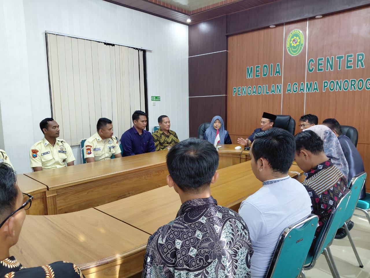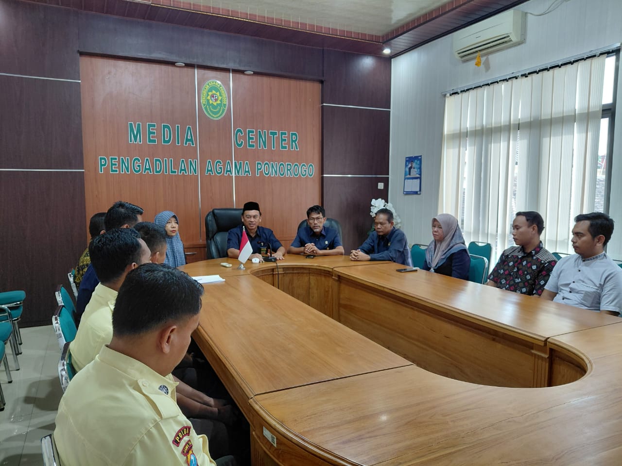 www.pa-ponorogo.go.id || Pengadilan Agama (PA) Ponorogo menyelenggarakan pembekalan dan arahan perdana bersama tenaga outsourcing pada Hari Rabu, Tanggal 7 Januari 2026, bertempat di Ruang Media Centre Pengadilan Agama Ponorogo. Kegiatan yang dimulai pada pukul 09.00 WIB tersebut merupakan langkah awal dalam membangun sinergi, kedisiplinan, serta peningkatan kualitas pelayanan pendukung di lingkungan Pengadilan Agama Ponorogo. Acara pembekalan dan arahan ini dihadiri langsung oleh unsur pimpinan dan pejabat struktural Pengadilan Agama Ponorogo, yakni Ketua Pengadilan Agama Ponorogo, Wakil Ketua, Panitera, Sekretaris, serta Kepala Sub Bagian Umum dan Keuangan.
