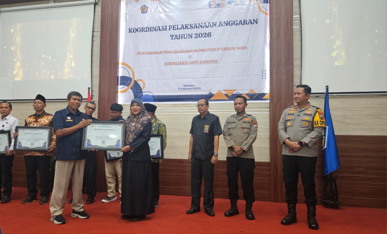 www.pa-ponorogo.go.id|| Pengadilan Agama (PA) Ponorogo turut menghadiri kegiatan Koordinasi Pelaksanaan Anggaran Tahun 2026, yang diselenggarakan oleh Kantor Pelayanan Perbendaharaan Negara (KPPN) Tipe A1 Madiun pada Rabu (11/2/2026). Kegiatan yang berlangsung di Aula Piet Harjono KPPN Madiun ini, dirangkaikan dengan Penyerahan Penghargaan Semester II Tahun 2025 serta Sosialisasi Anti Korupsi. PA Ponorogo dalam kegiatan tersebut diwakili oleh Sekretaris PA Ponorogo selaku Kuasa Pengguna Anggaran, Ibu St. Mar’atu Ulfah, S.Ag., yang hadir secara langsung memenuhi undangan dari KPPN Madiun.