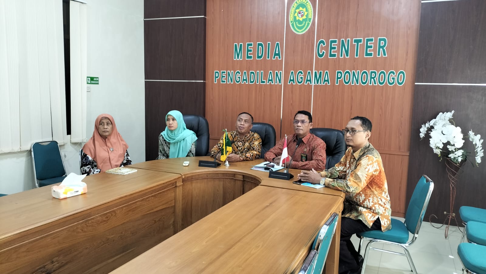 www.pa-ponorogo.go.id || Jum’at, 15 Desember 2023, bertempat di ruang media center Pengadilan Agama Ponorogo para tenaga teknis yang terdiri dari hakim dan panitera muda Pengadilan Agama Ponorogo mengikuti sosialisasi hasil pendidikan dan Pelatihan di Riyadh Arab Saudi. Kagiatan ini dilaksanakan guna menindaklanjuti surat undangan dari Direktorat Jendral Badan Peradilan Agama (Dirjen Badilag) Nomor : 3611/DJA/DL1.10/XII/2023 tanggal 5 Desember 2023. Adapaun tujuan dari sosialisasi ini adalah untuk mensosialisasikan Hasil Pendidikan dan Pelatihan Ekonomi Syariah di Higher Judicial Institute Universitas Islam Imam Muhammad Bin Saud, Riyadh, Arab Saudi. Kegiatan ini diikuti oleh seluruh satuan kerja dibawah Badan Peradilan Agama di Indonesia.